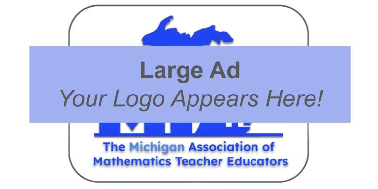 Large ads appear on their own row on the website and in printed materials. The logo size and dimensions are flexible, and the font and character limits are greater than for small ads. Advertising through MI-AMTE does not imply an endorsement from MI-AMTE for any advertised products or services. Final formatting decisions will be made at the discretion of the webmaster, newsletter editor, and/or conference planning committee.